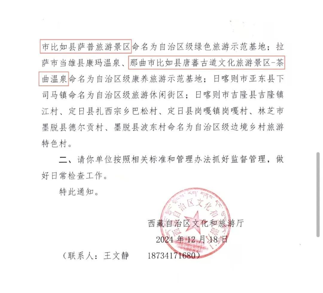 近日西藏自治區文化和旅游廳下發