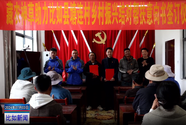 活動現場,氣氛熱烈而莊重。在藏農神草有限公司董事長李東強的帶領下,企業代表與塘連村兩委及駐村工作隊共同簽訂了助力鄉村振興結對幫扶意向書。這一舉措標志著藏農神草有限公司正式加入塘連村的鄉村振興事業,將為當地的發展注入新的活力。