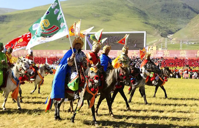 聶榮縣賽馬節(jié)則聚焦“格薩爾文化”,8月12日在聶榮鎮(zhèn)草原上,150名牧民身著格薩爾史詩(shī)人物服飾,騎著戰(zhàn)馬演繹“格薩爾王出征”情景劇。騎手們手持仿制的古代兵器,隨著藏鼓與長(zhǎng)號(hào)的節(jié)奏變換隊(duì)形,重現(xiàn)史詩(shī)中“賽馬稱王”的經(jīng)典場(chǎng)景。活動(dòng)現(xiàn)場(chǎng),78歲的格薩爾說唱藝人洛桑次仁還即興演唱《格薩爾·羌塘分章》,歌聲與馬蹄聲交織,讓古老傳說在草原上鮮活起來(lái)。