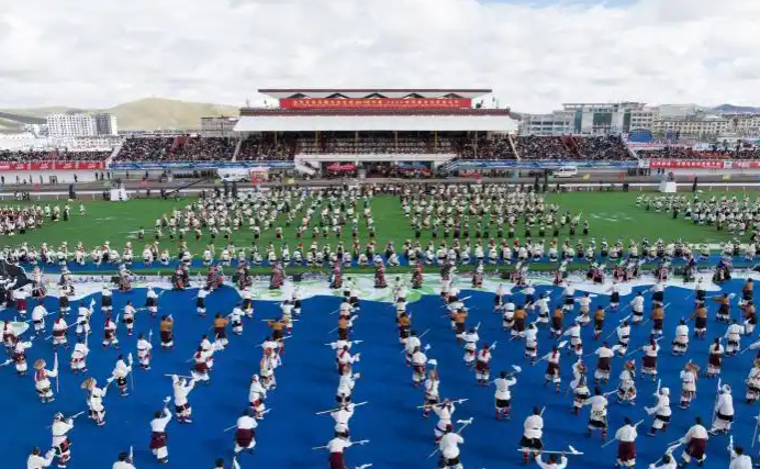 60年來,在黨中央親切關(guān)懷、西藏自治區(qū)黨委堅強(qiáng)領(lǐng)導(dǎo)及對口支援省市和企業(yè)無私援助下,那曲各項(xiàng)事業(yè)取得全方位進(jìn)步與歷史性成就。開幕式文藝演出以“馬”文化為核心,分三大篇章展開,四川、青海等地馬術(shù)表演隊與本地隊伍共展精湛技藝;千人共舞《禮贊甲子》、器樂合奏《風(fēng)從浙江來·樂在那曲揚(yáng)》等節(jié)目,生動呈現(xiàn)西藏自治區(qū)成立60年輝煌成就與對口支援成果。